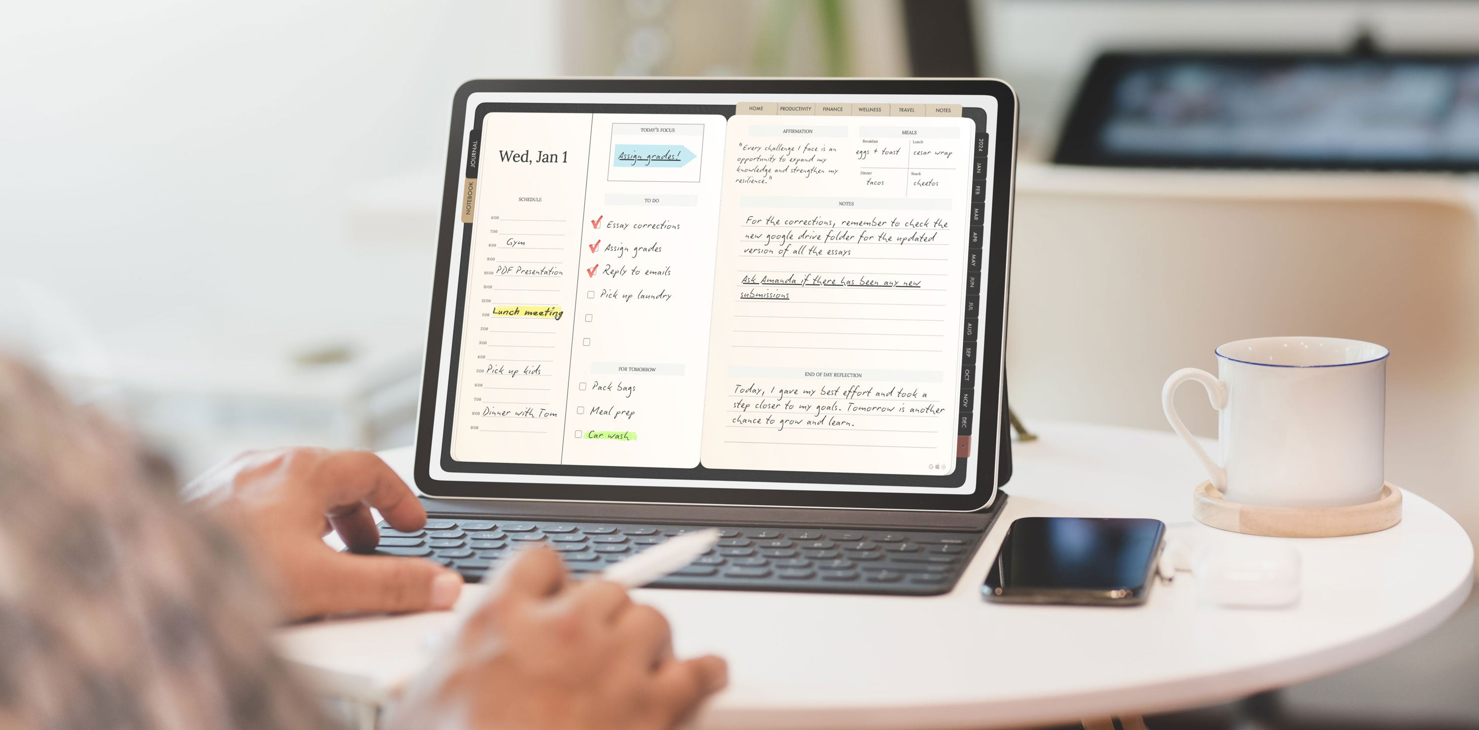Grab your tablet, upload your planner, and effortlessly organize all your notes, tasks, and goals.