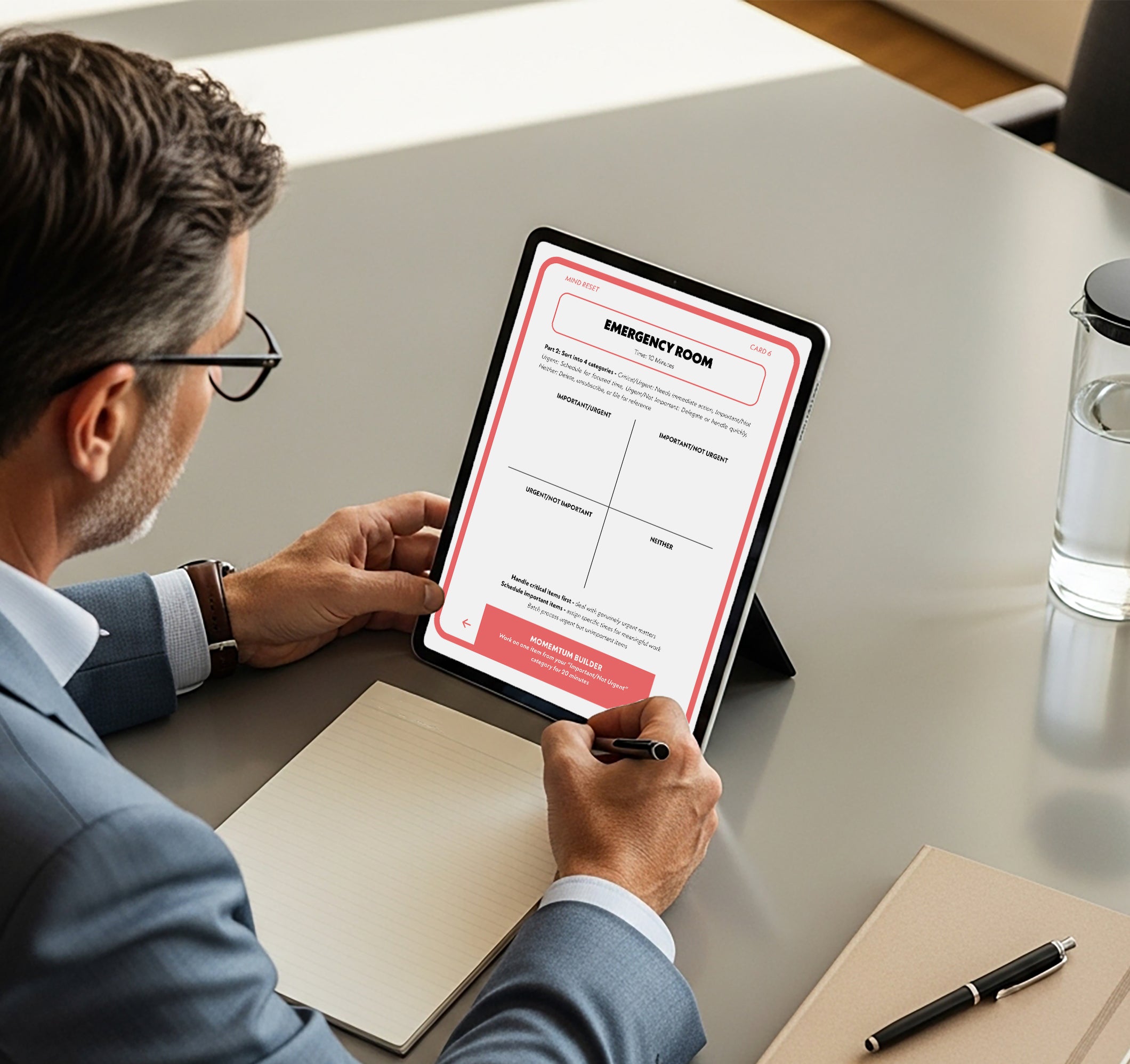 Optimized for distraction-free tablets like ReMarkable and e-inks but works beautifully on any tablet or as a companion to your notebook. Clean layouts with purposeful color that keeps you oriented and moving forward — no visual clutter, just clarity when you need it most